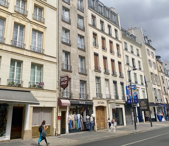 Small budget hotel on the south edge of Marais district, near cafes and bakery. 7-minute walk to City Hall (Hotel de Ville) or Place des Vosges, 18-minute walk to Notre Dame. 4-minute walk to "Saint-Paul" or "Bastille" metro station. 29 compact rooms (single, double, or triples) with street or courtyard view and free WiFi. Elevator. $18 Breakfast buffet. 24-hour front desk. Luggage storage.